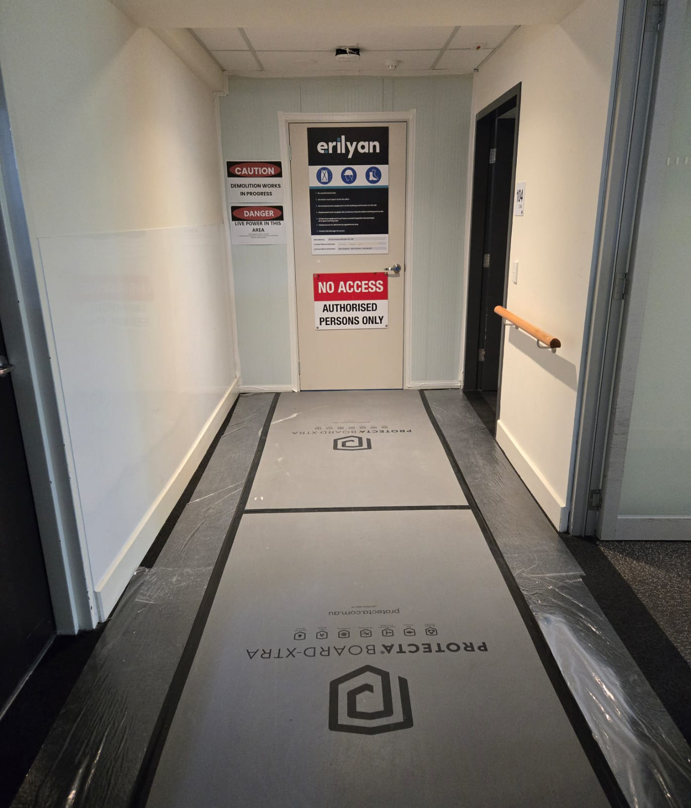 Protecta Board XTRA 3mm was installed along high-traffic walkways to provide robust, non-slip protection over hard flooring. The smooth finish facilitated regular machine scrubbing without compromising durability.