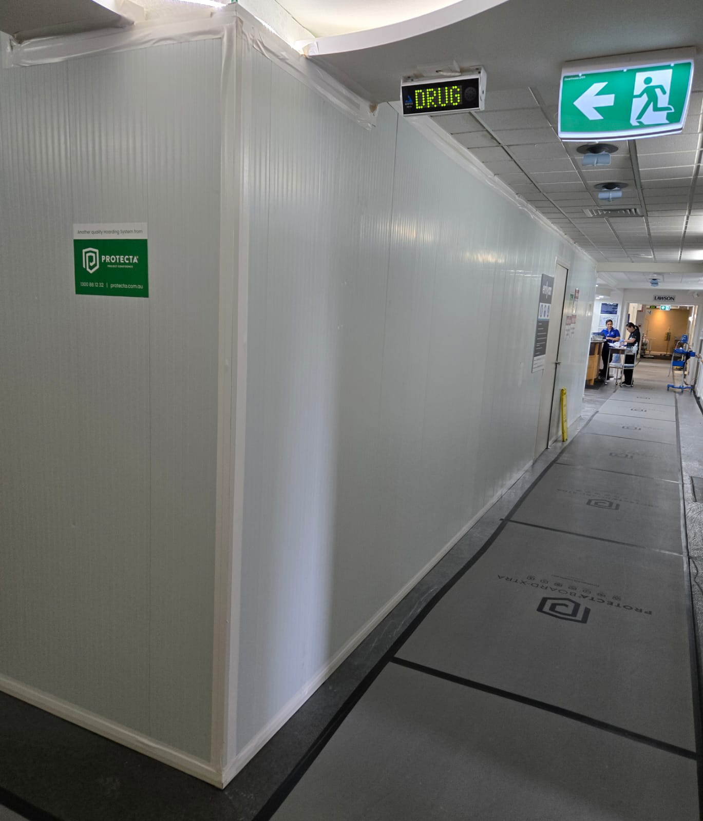 Across the six-month project, Protecta’s solutions effectively safeguarded the hospital’s flooring, access walkways, and lift interiors, supporting uninterrupted operations while upholding strict Infection Prevention Control standards.